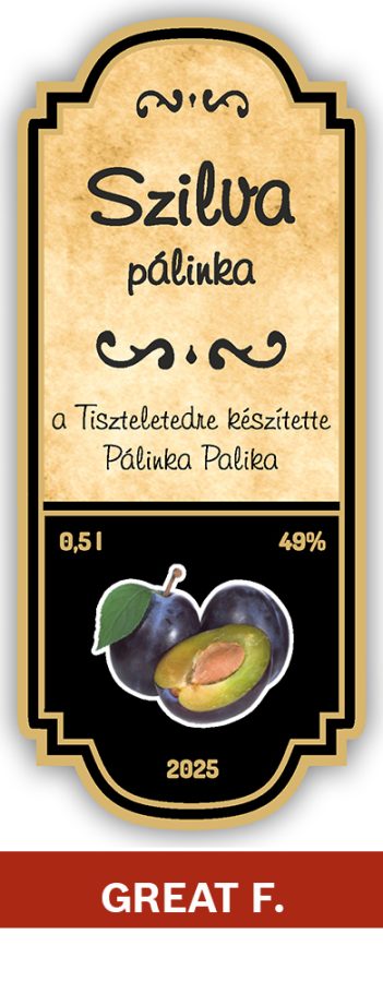 - GREAT F pálinkacímke