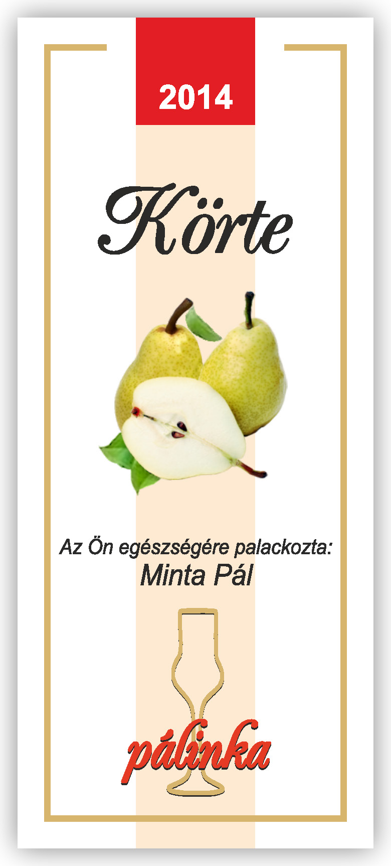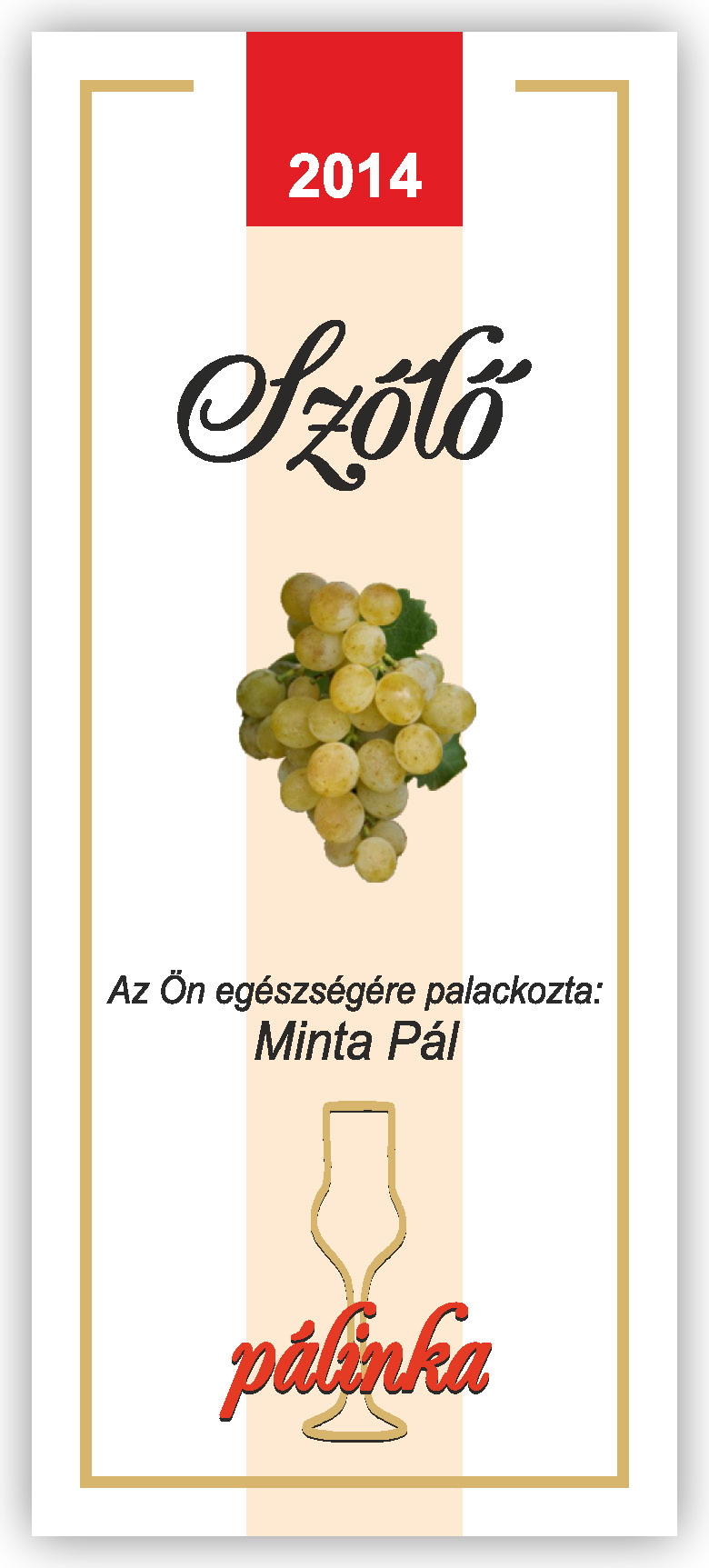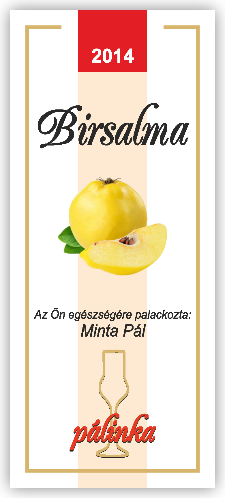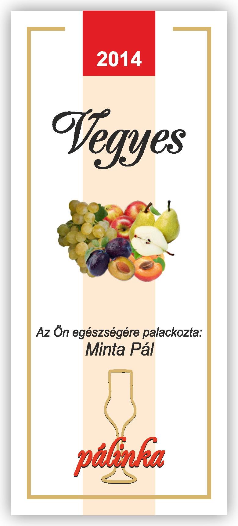 Két méretben készül (igény szerint ettől eltérő méretben is elkészítjük felár felszámítása nélkül) 60×140 mm és 55×115 mm, a 0,5 literes illetve 0,3 literes „hosszúnyakú” palackokhoz, közel 70 féle gyümölcs és zöldség variációban. Az alábbi címkék nem fedik le a rendelhető gyümölcs választékot, csupán bemutató célt szolgálnak. Az ajánlatkérést (rendelést) követően elküldjük e-mailben a kért címke változatot.