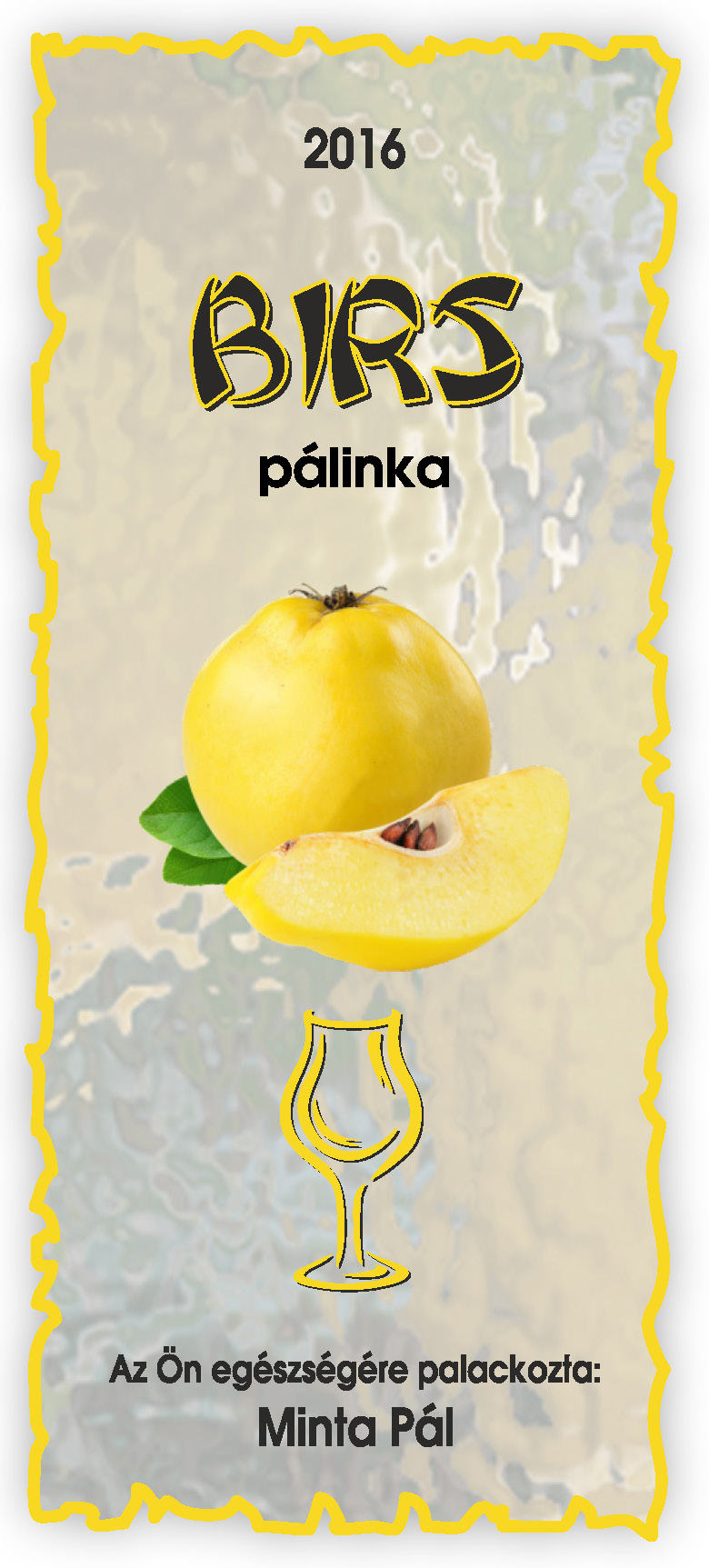 Két méretben készül (igény szerint ettől eltérő méretben is elkészítjük felár felszámítása nélkül) 60×140 mm és 50×115 mm, a 0,5 literes illetve 0,3 literes „hosszúnyakú” palackokhoz, közel 70 féle gyümölcs és zöldség variációban. Az alábbi címkék nem fedik le a rendelhető gyümölcs választékot, csupán bemutató célt szolgálnak. Az ajánlatkérést (rendelést) követően elküldjük e-mailben a kért címke változatot.
