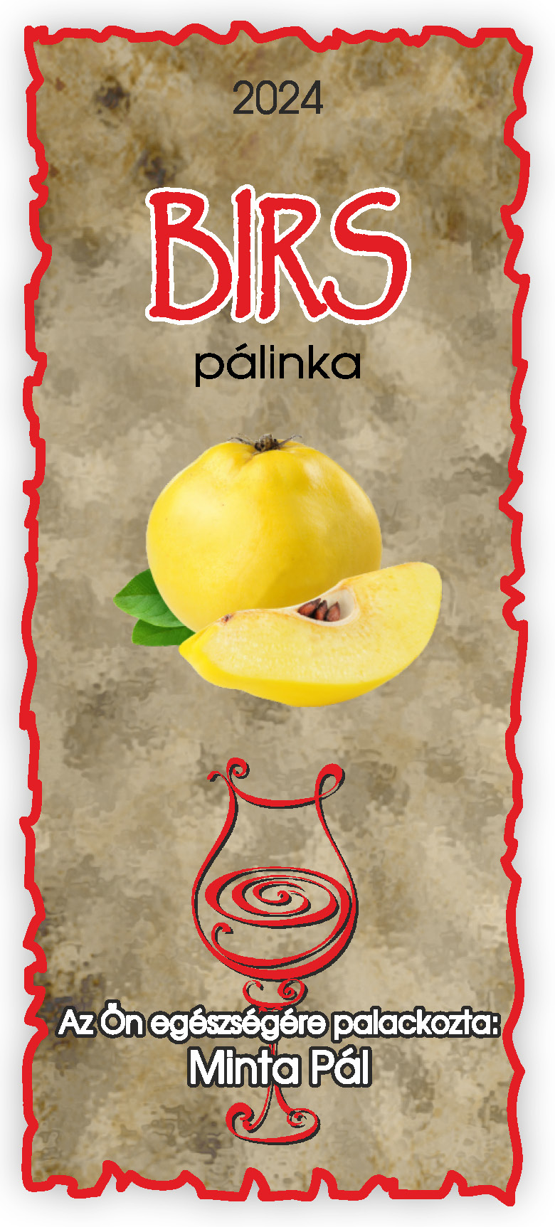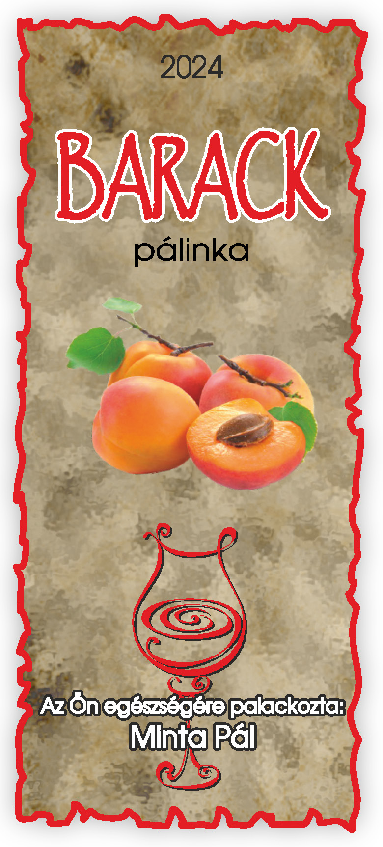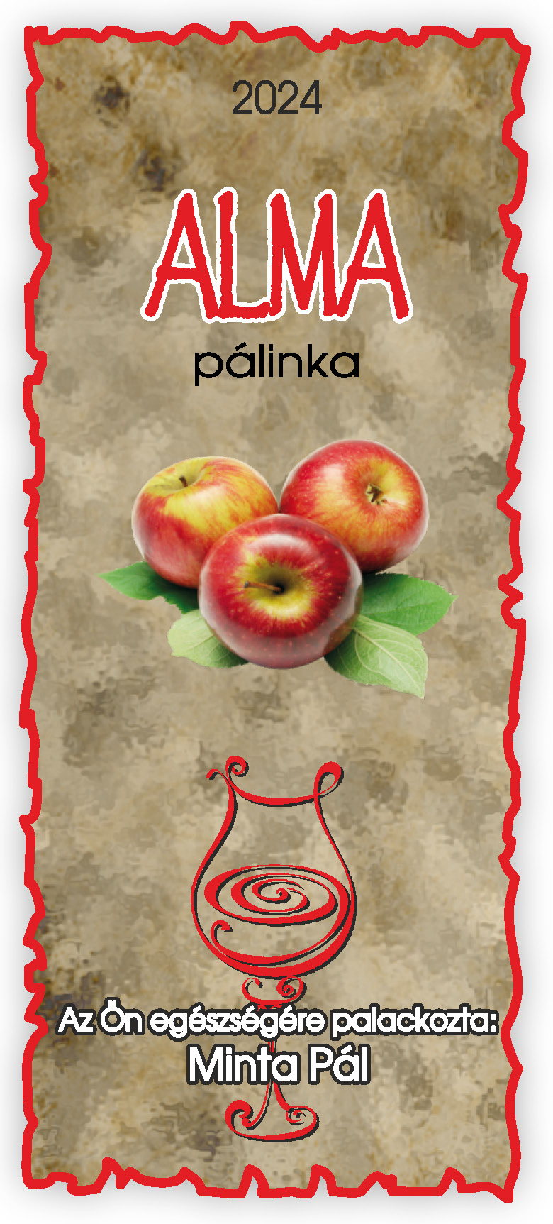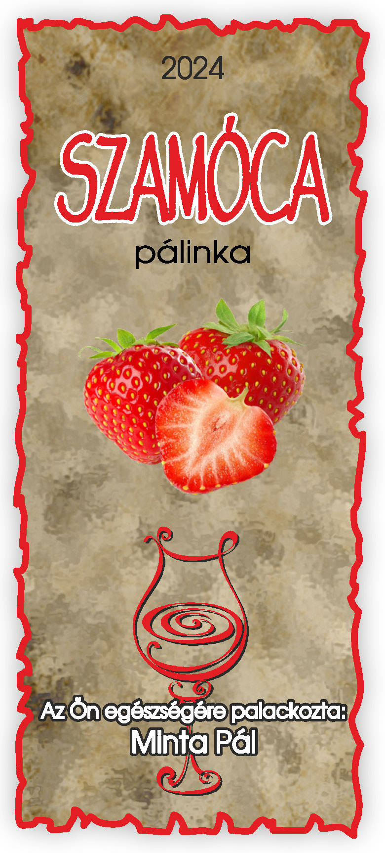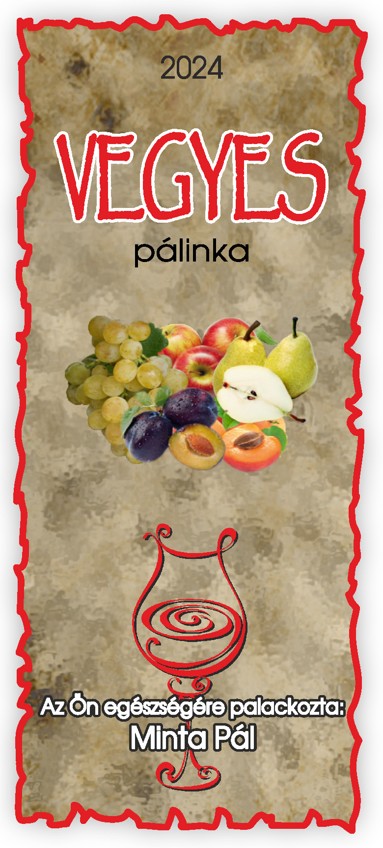 Két méretben készül, kontúrvágott (igény szerint ettől eltérő méretben is elkészítjük felár felszámítása nélkül) 60×140 mm és 50×115 mm, a 0,5 literes illetve 0,3 literes „hosszúnyakú” palackokhoz, közel 70 féle gyümölcs és zöldség variációban. Az alábbi címkék nem fedik le a rendelhető gyümölcs választékot, csupán bemutató célt szolgálnak. Az ajánlatkérést (rendelést) követően elküldjük e-mailben a kért címke változatot.