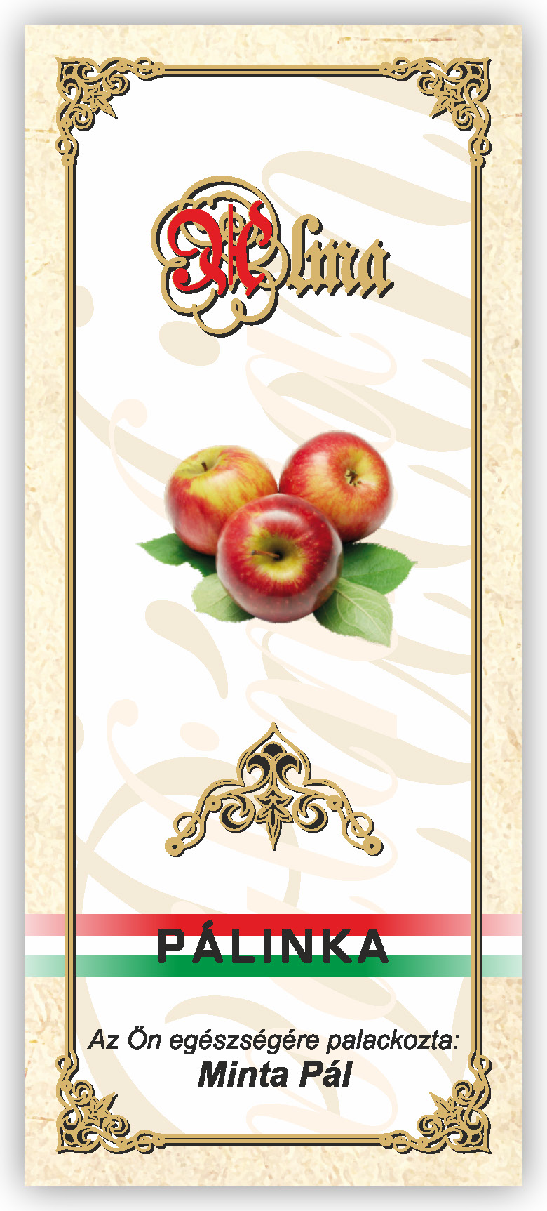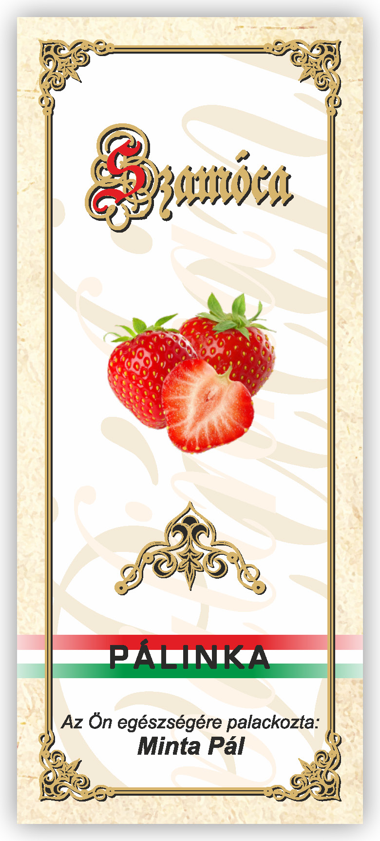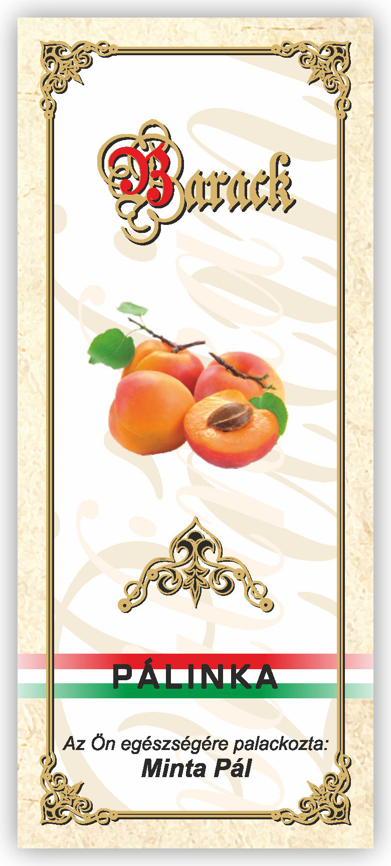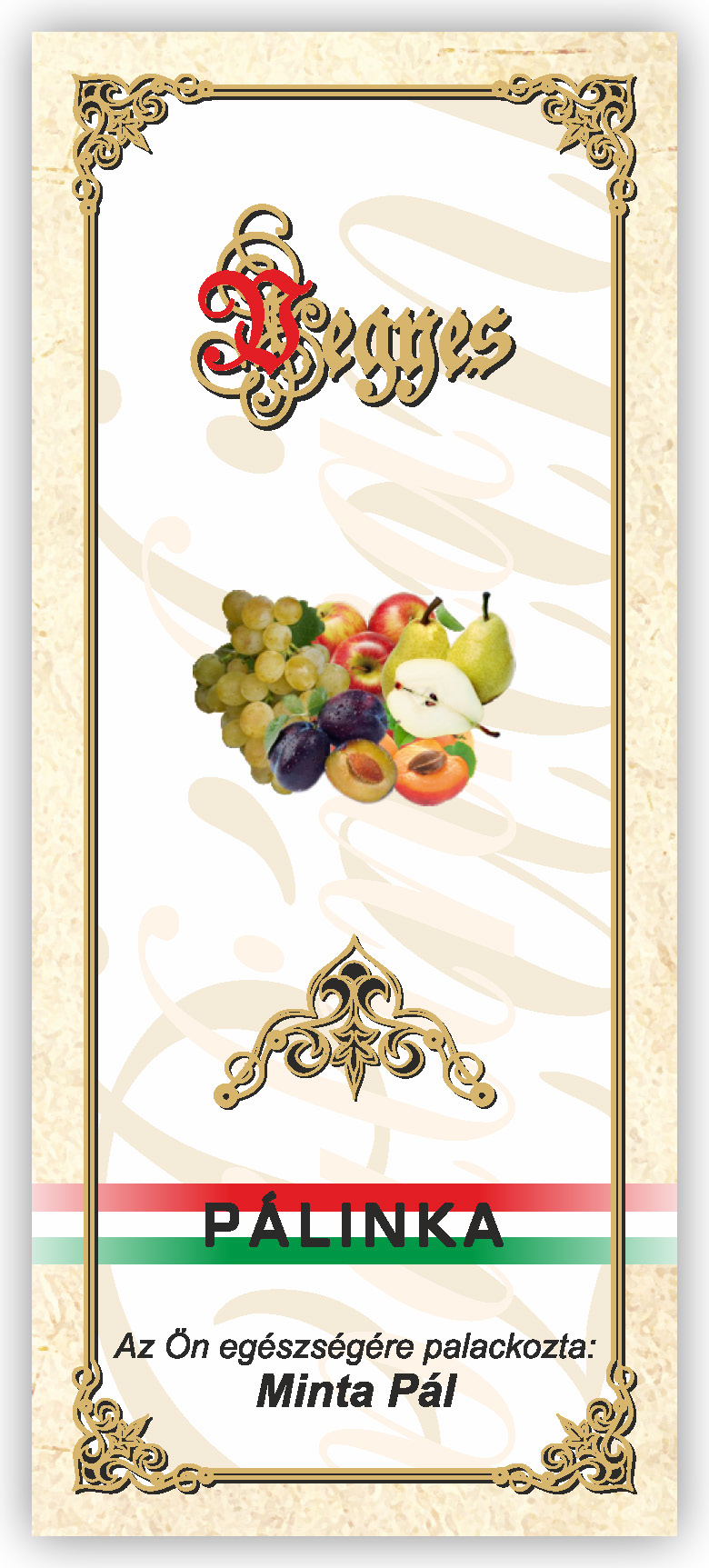 Két méretben készül, kontúrvágott (igény szerint ettől eltérő méretben is elkészítjük felár felszámítása nélkül) 60×140 mm és 55×115 mm, a 0,5 literes illetve 0,3 literes „hosszúnyakú” palackokhoz, közel 70 féle gyümölcs és zöldség variációban. Az alábbi címkék nem fedik le a rendelhető gyümölcs választékot, csupán bemutató célt szolgálnak. Az ajánlatkérést (rendelést) követően elküldjük e-mailben a kért címke változatot.