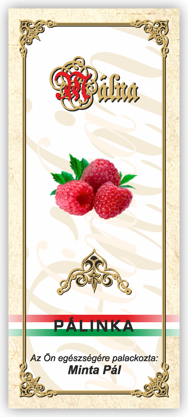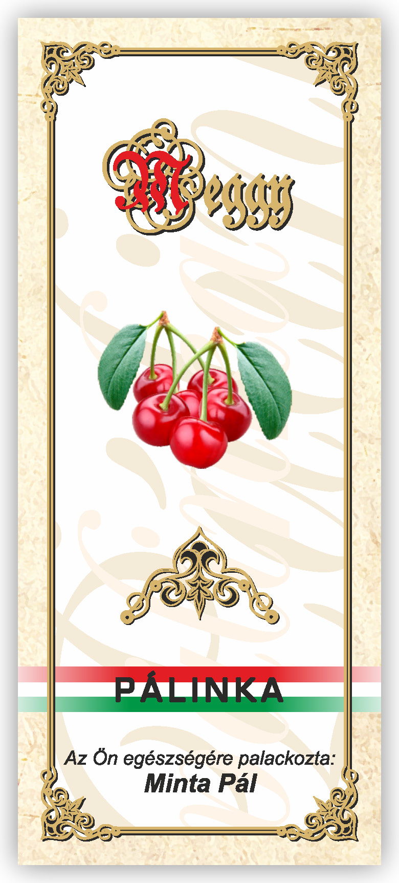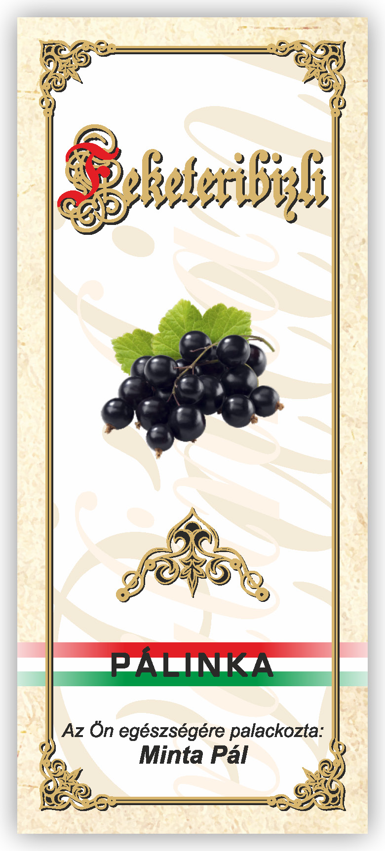 Két méretben készül, kontúrvágott (igény szerint ettől eltérő méretben is elkészítjük felár felszámítása nélkül) 60×140 mm és 55×115 mm, a 0,5 literes illetve 0,3 literes „hosszúnyakú” palackokhoz, közel 70 féle gyümölcs és zöldség variációban. Az alábbi címkék nem fedik le a rendelhető gyümölcs választékot, csupán bemutató célt szolgálnak. Az ajánlatkérést (rendelést) követően elküldjük e-mailben a kért címke változatot.