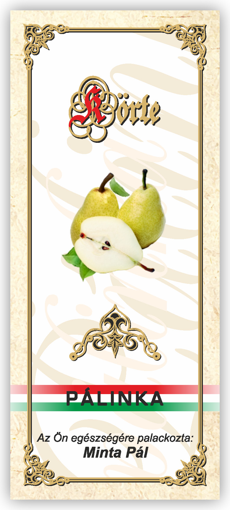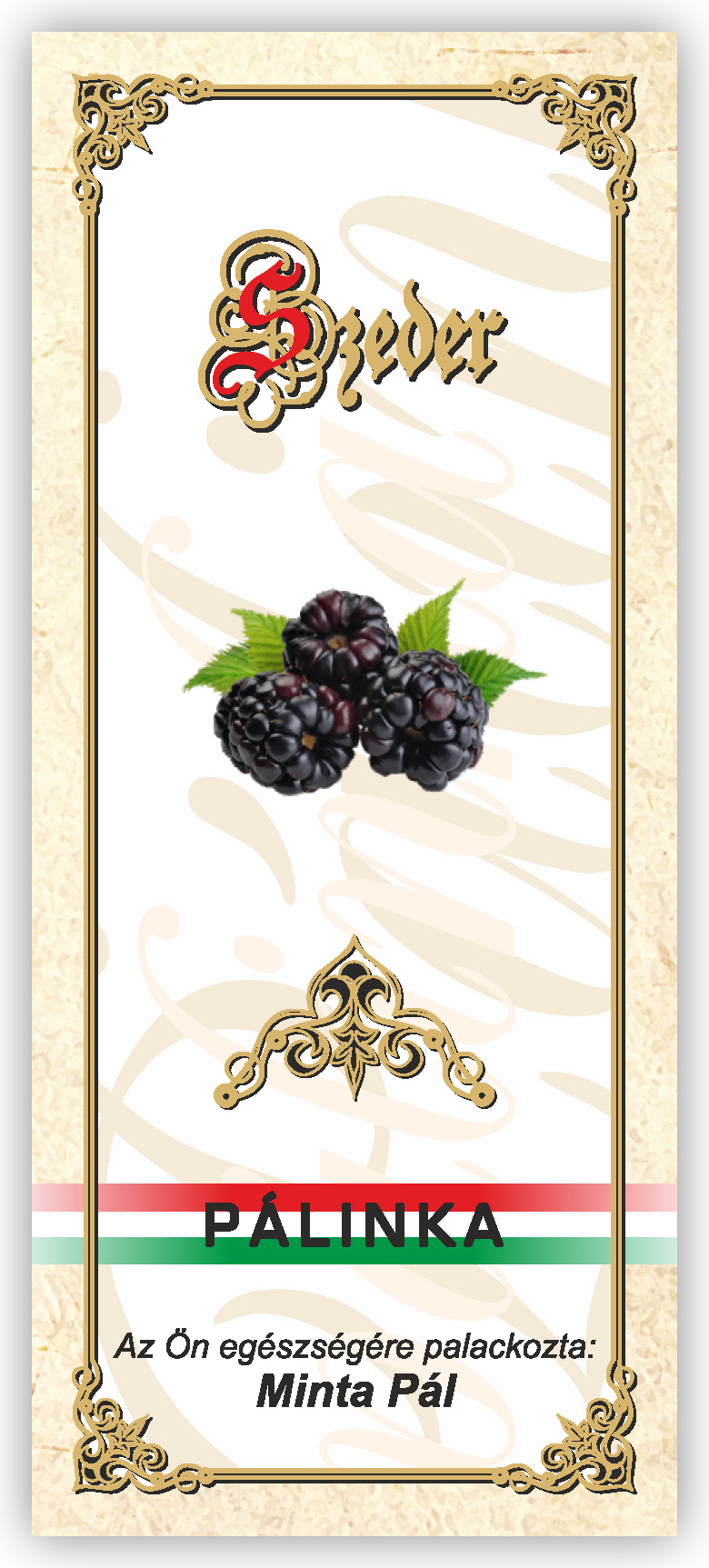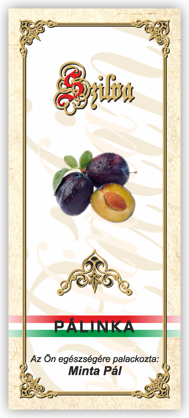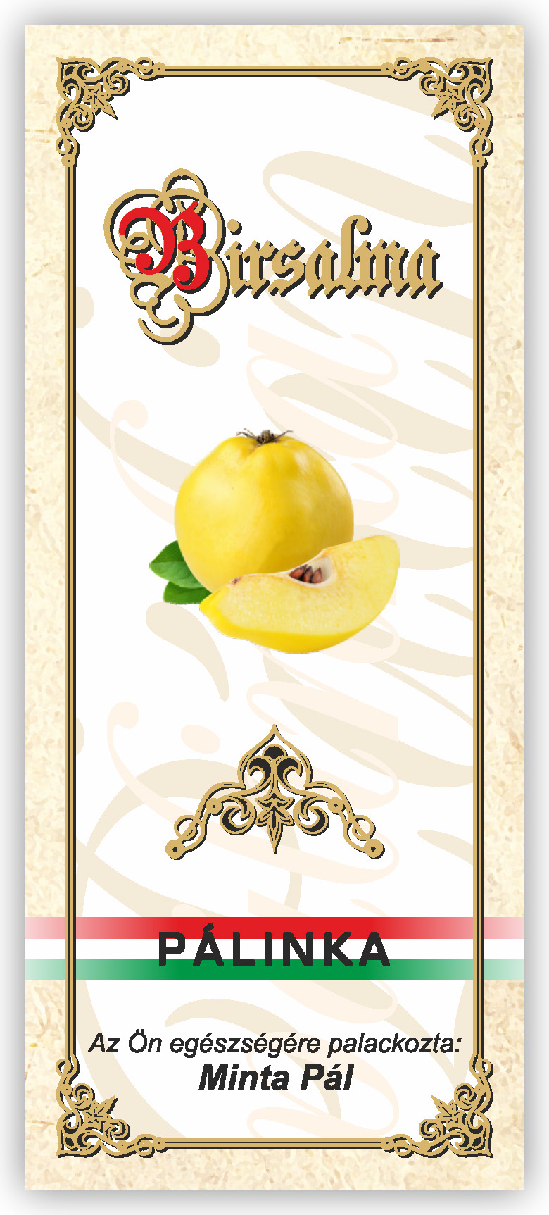 Két méretben készül, kontúrvágott (igény szerint ettől eltérő méretben is elkészítjük felár felszámítása nélkül) 60×140 mm és 55×115 mm, a 0,5 literes illetve 0,3 literes „hosszúnyakú” palackokhoz, közel 70 féle gyümölcs és zöldség variációban. Az alábbi címkék nem fedik le a rendelhető gyümölcs választékot, csupán bemutató célt szolgálnak. Az ajánlatkérést (rendelést) követően elküldjük e-mailben a kért címke változatot.